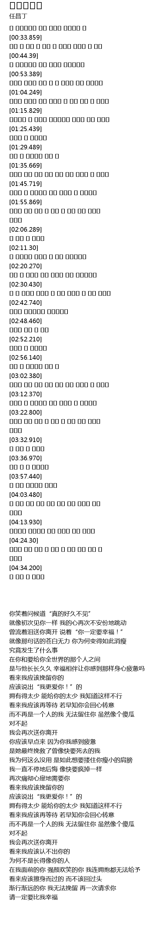 | [04:15.110] | 스쳐갈걸 그랬나봐 고갤 돌리지 말걸 그랬어 |