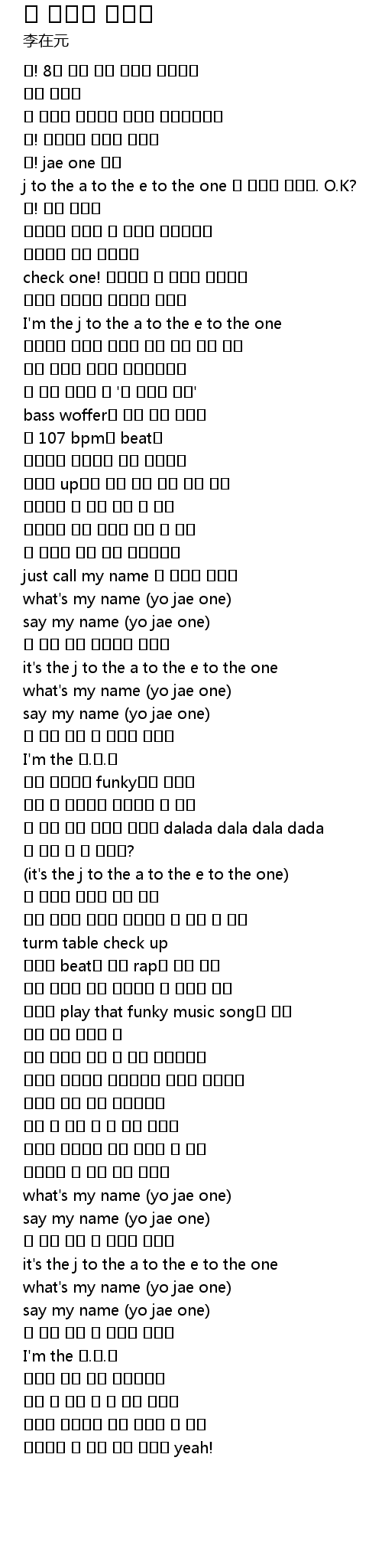 | [01:06.994] | what' s my name yo jae one |
