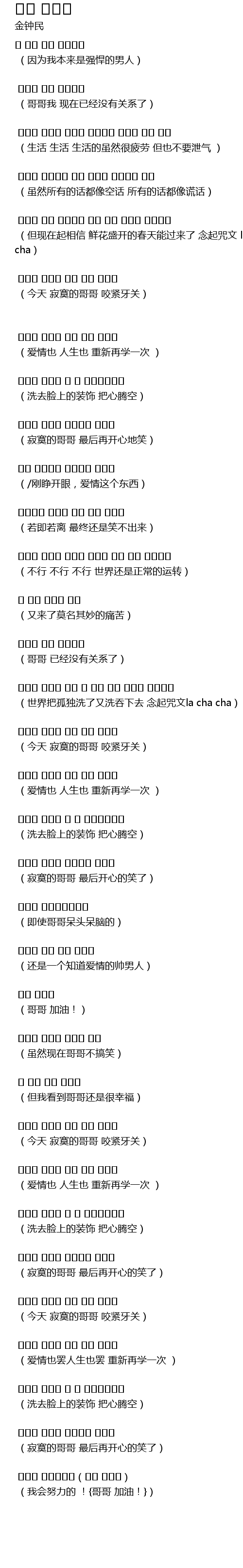 | (今天 寂寞的哥哥 咬紧牙关) | |