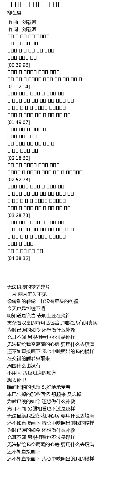 | [00:00.00] | zuò qǔ : liú zài hé |