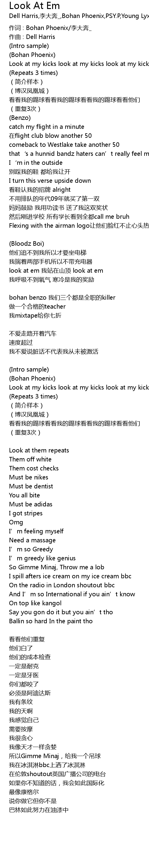 | Look at my kicks look at my kicks look at my kicks look at em | |