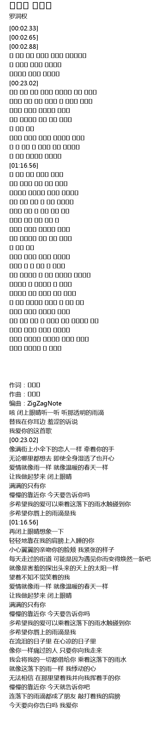 | [02:57.17] | 내리는 비처럼 설레이는 내마음 |