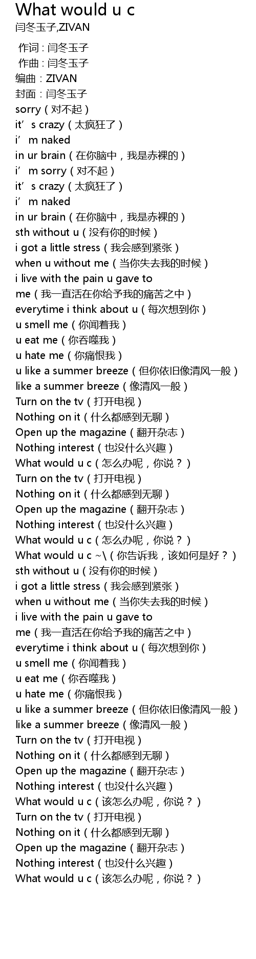 | [01:42.562] | What would u c(怎么办呢,你说?) |
