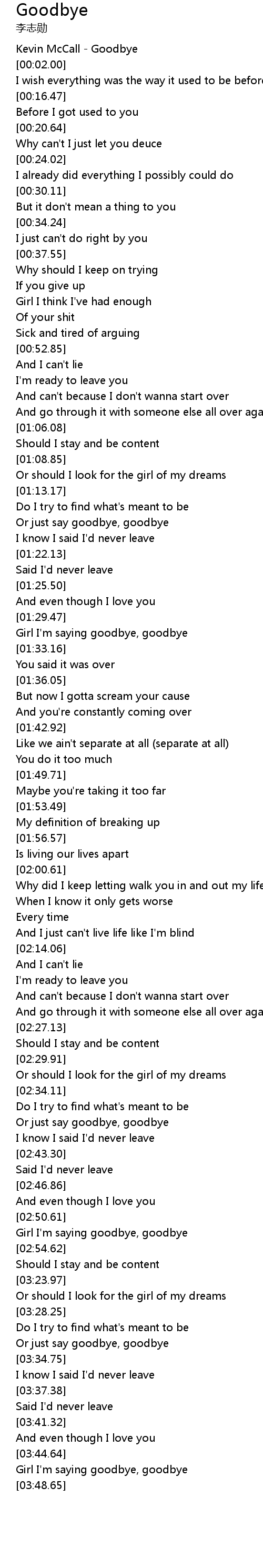| [00:00.00] | Kevin McCall - Goodbye |