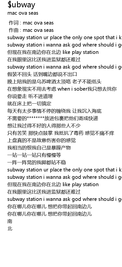 | Song | $ubway |