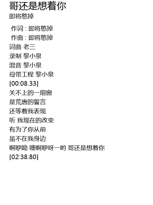 | [00:47.98] | 啊咿呦 噢啊咿呀一哟 哥还是想着你 |