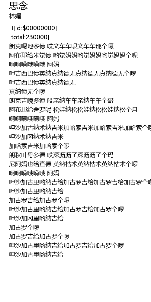 | [03:50.0] | jia gu luo ji gei jia gu luo ge luo ga sha jia gu li yo na ji gei jia gu luo ji gei jia gu luo ge luo ga sha jia gu li yo na ji gei |