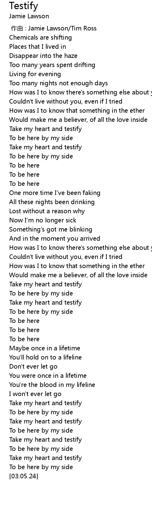 | [00:43.01] | Take my heart and testify |