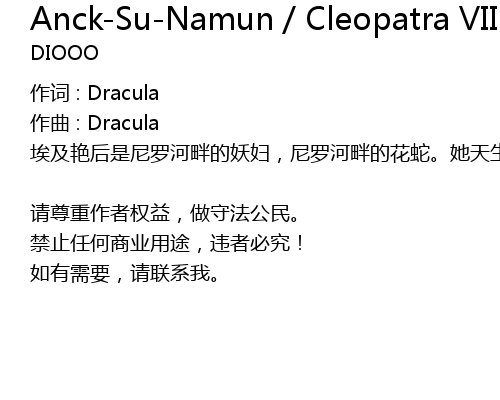 | Song | Anck-Su-Namun / Cleopatra VII Philopator |