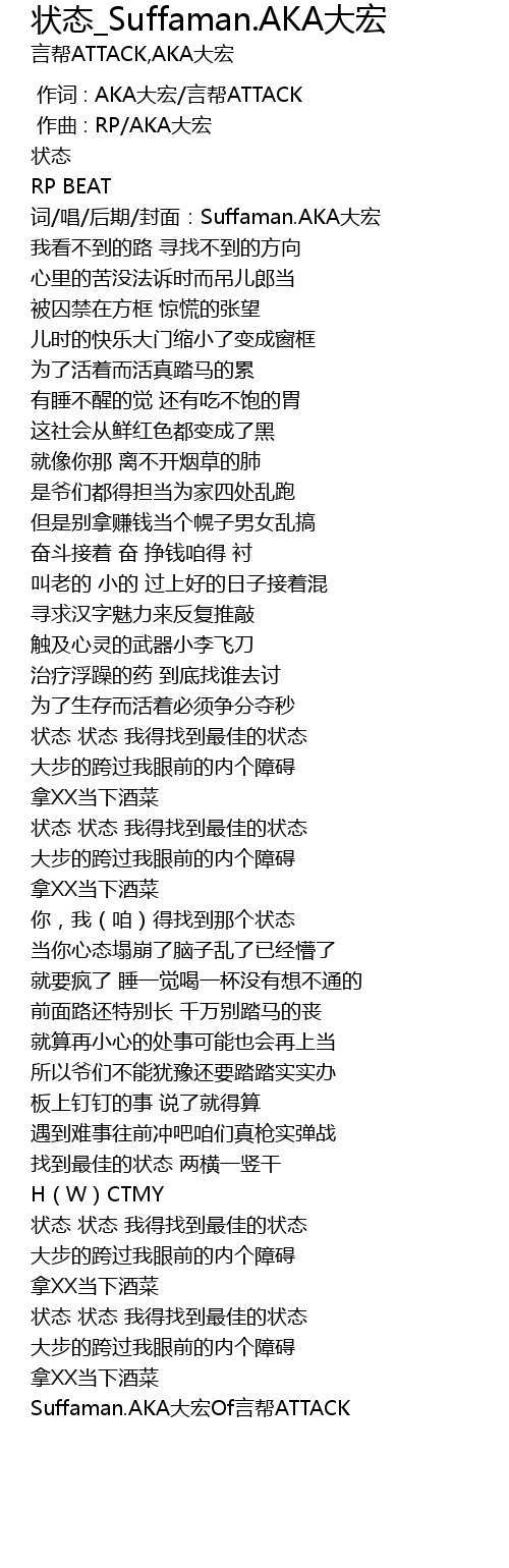| [00:00.000] | 作词 : AKA大宏/言帮ATTACK |