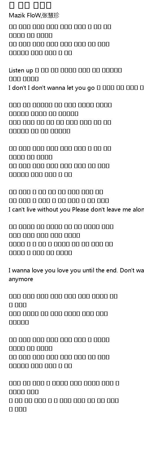 시간이 많이 흘러도 난 너없으면 못살아 아름다운 미래도 난 너없으면 못살아 |