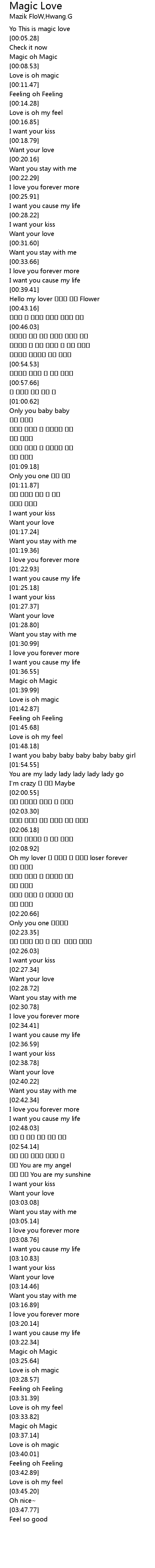 | [00:41.09] | Hello my lover 그대는 나의 Flower |