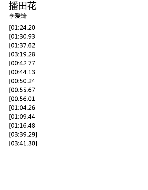 | [02:58.80][01:24.20][00:16.57] | 播田花 惦惦块开 惦惦水 |