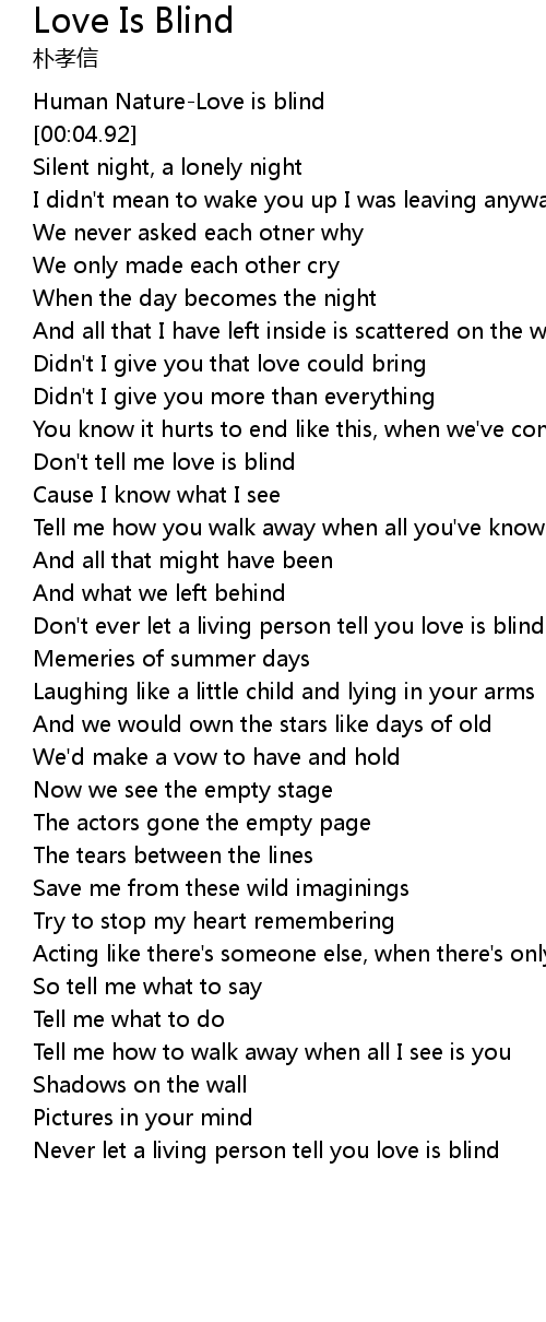 | [01:32.61] | Don't ever let a living person tell you love is blind |