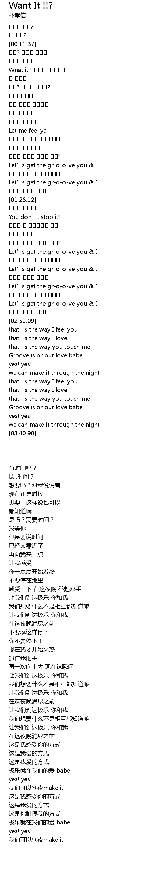 | [00:27.52] | Wnat it ! 그렇게 말해도 돼 |