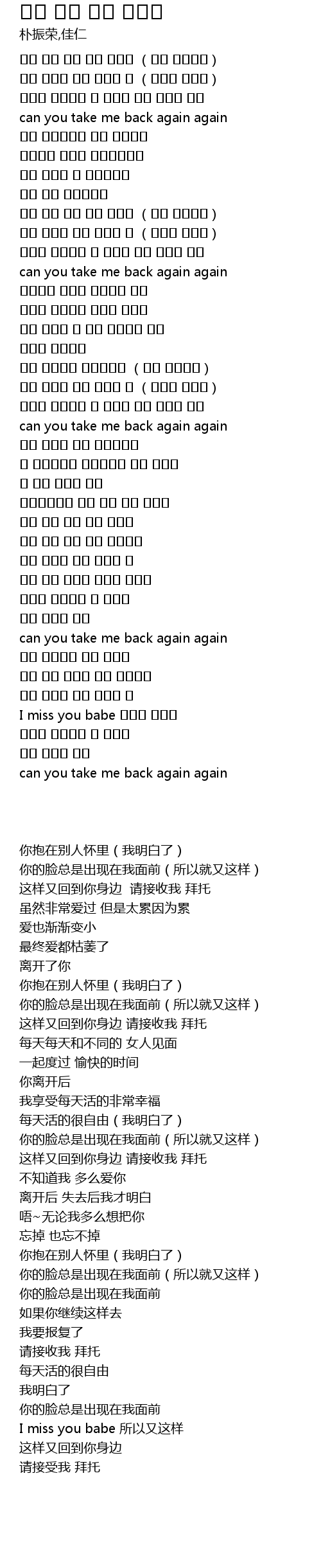 | [01:41.890] | 이렇게 돌아와서 또 너에게 나를 받아줘 제발 |