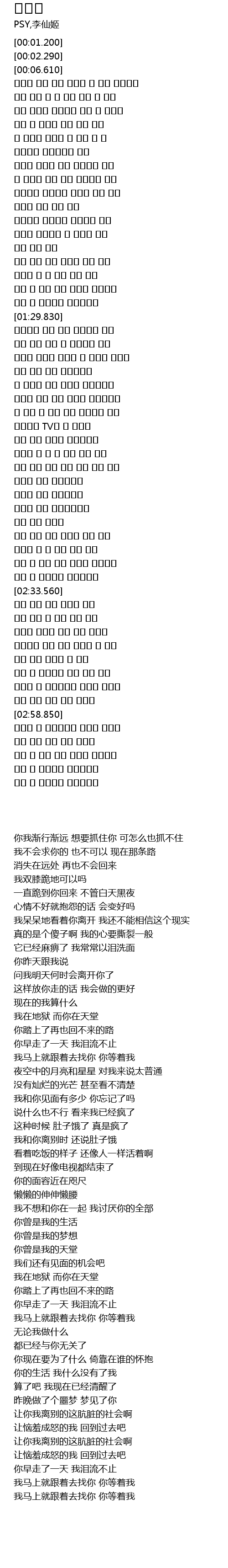 당신과 날 생이별시킨 더러운 세상아 |