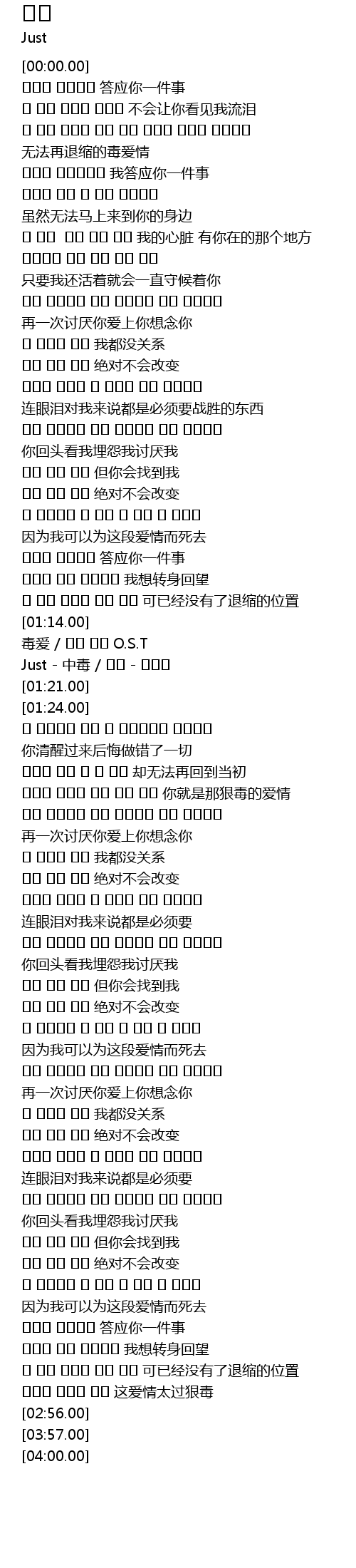 | [01:18.00] | Just - 中毒 / 중독 - 저스트 |
