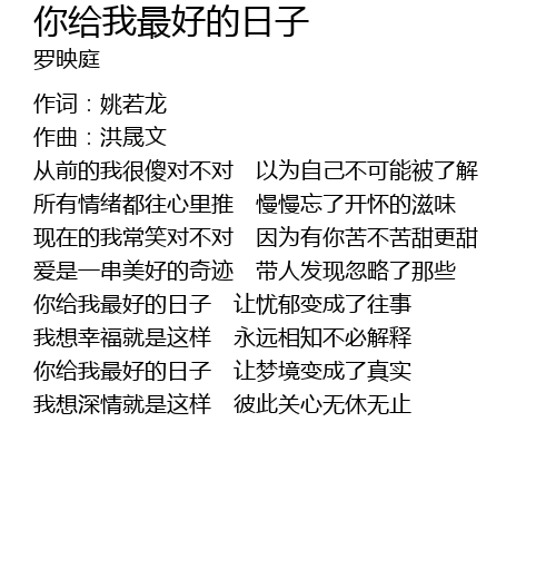 | 你给我最好的日子 让忧郁变成了往事 | |