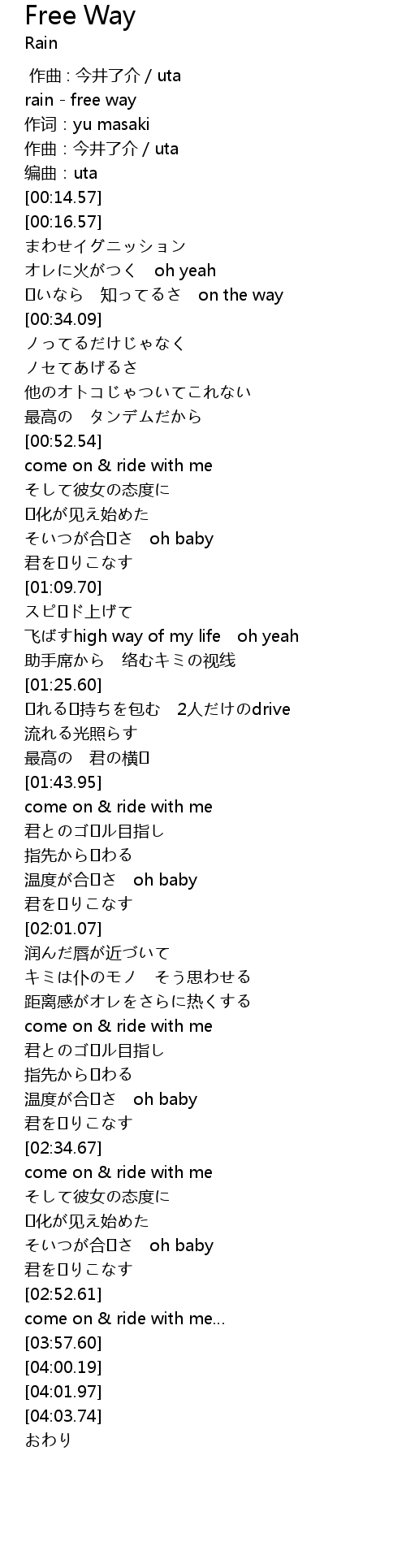 | [02:18.64] | come on & ride with me |