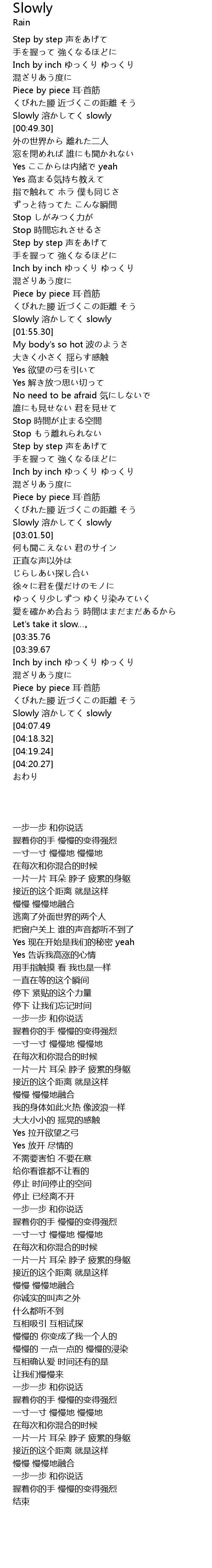 | [04:00.43] | Slowly 溶かしてく slowly |