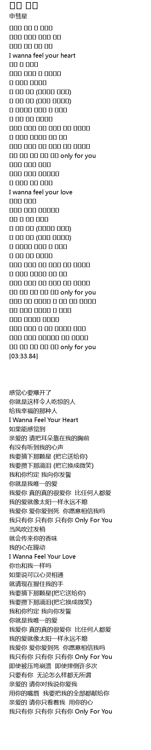 | [02:33.76] | 오직 내겐 너야 너야 너야 only for you |