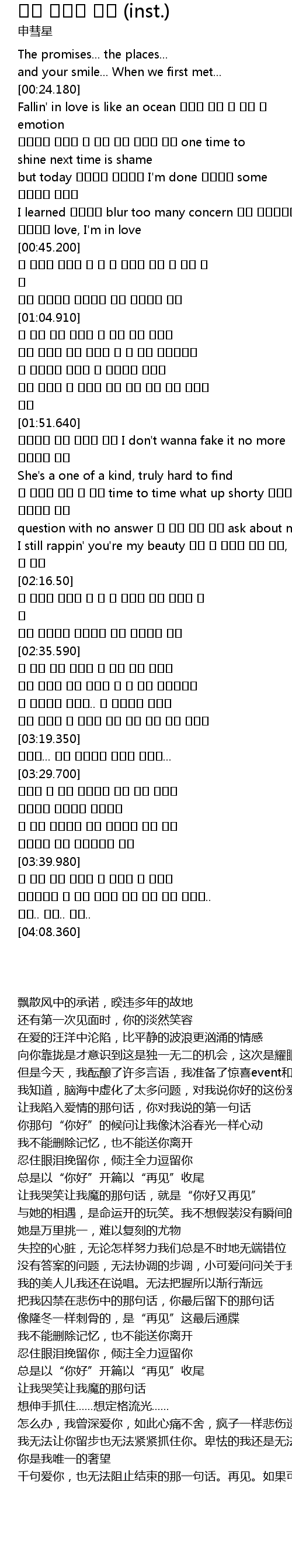 | [02:11.940] | I still rappin' you're my beauty 잡을 수 없기에 저기 멀리, 저 멀리 |