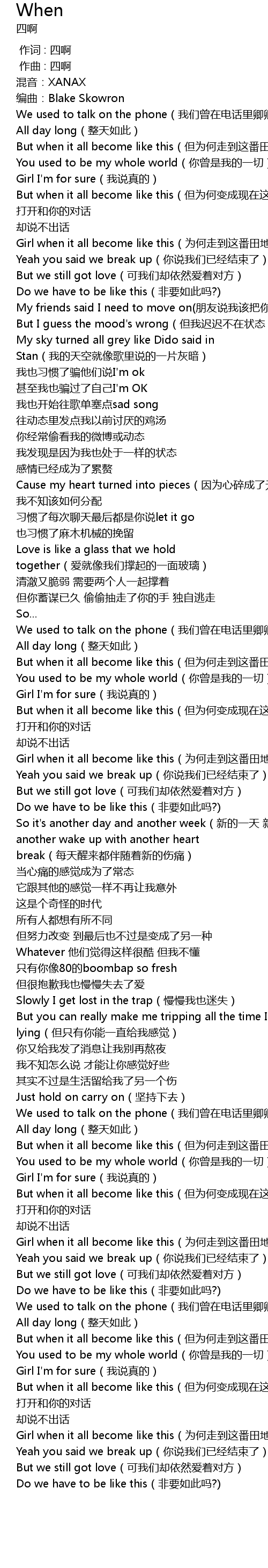 | [02:50.23] | Yeah you said we break up nǐ shuō wǒ men yǐ jīng jié shù le |