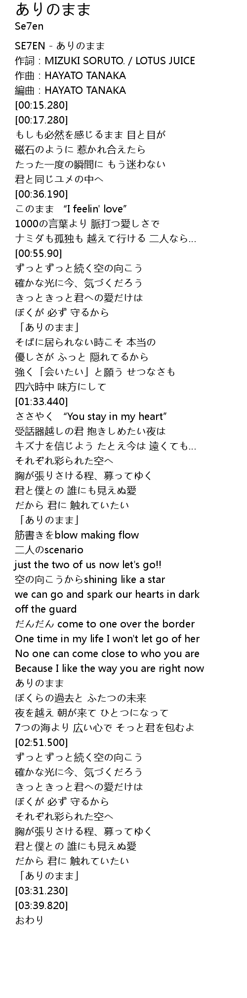 | [00:00.0] | SE7EN - ありのまま |