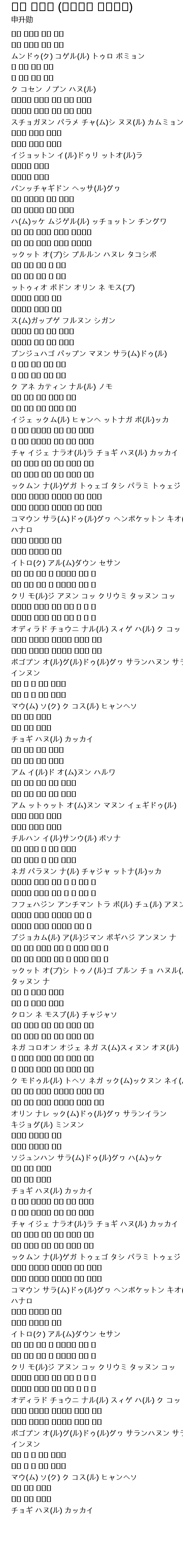 | コマウン サラ(ム)ドゥ(ル)グヮ ヘンボケットン キオ(ク) ハナロ | |
