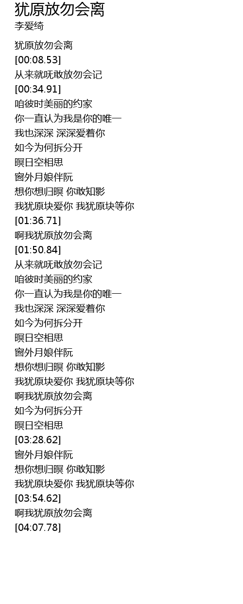 | [03:45.46] | 我犹原块爱你 我犹原块等你 |