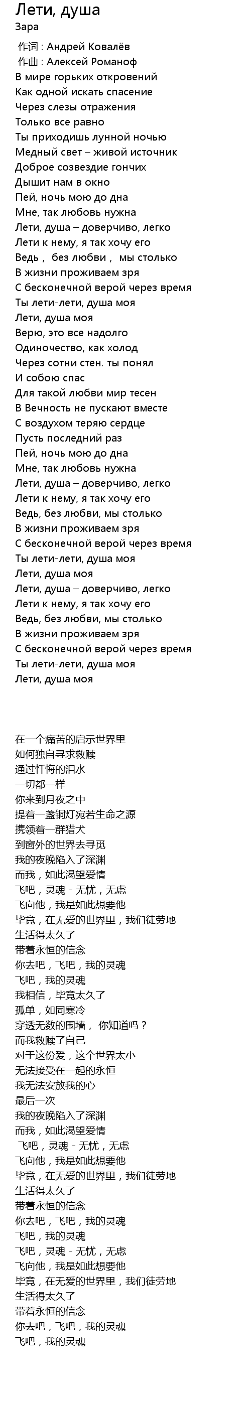 Ты лети-лети, душа моя |