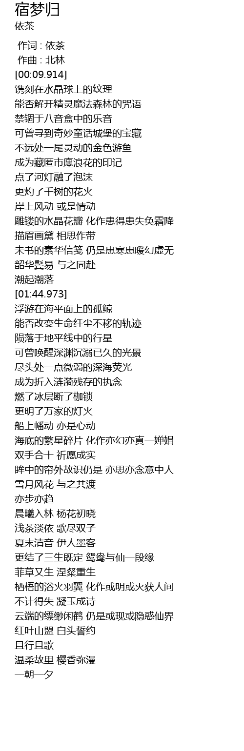 | [03:34.191] | 更结了三生既定 鸳鸯与仙一段缘 |