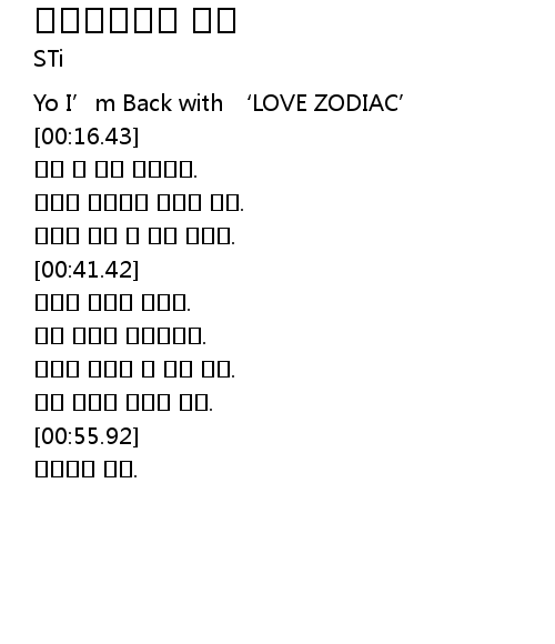 | [00:05.97] | Yo I' m Back with ' LOVE ZODIAC' |