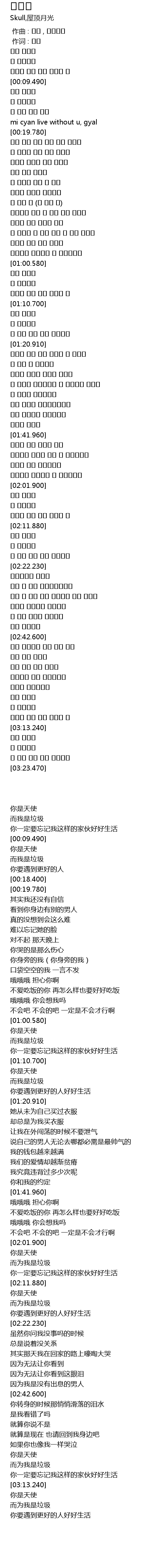 | [00:00.110] | 作词 : 스컬 |