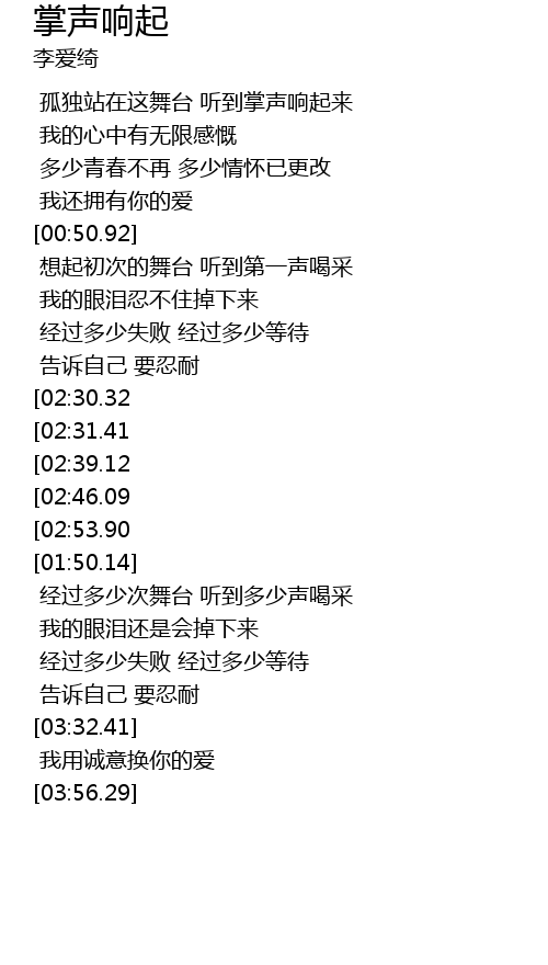 [03:00.91][02:31.41][01:21.51] 掌声响起来 我心更明白