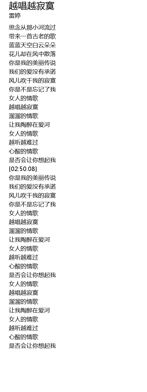 | [02:15.74] | 越唱越寂寞 |