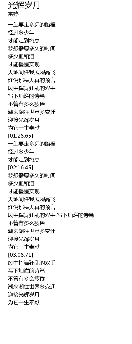 | [01:17.70] | yíng jiē guāng huī suì yuè |