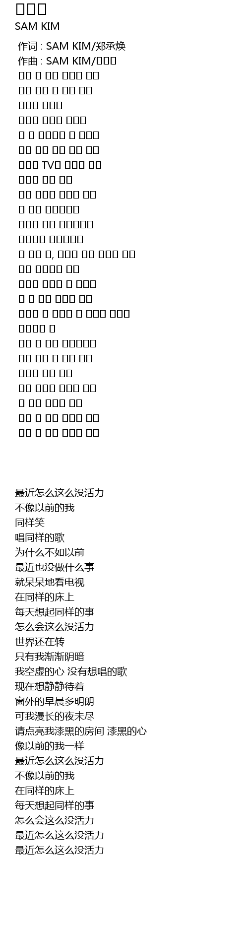 | [00:00.000] | 作词 : SAM KIM/郑承焕 |