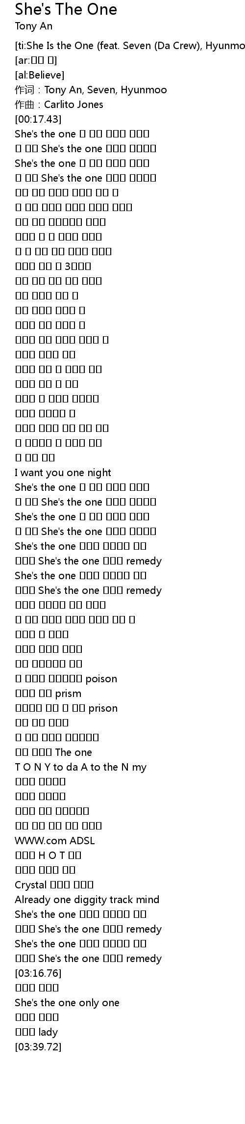 | [ti:She Is the One (feat. Seven (Da Crew), Hyunmoo (Trespass) & TKO)] | |
