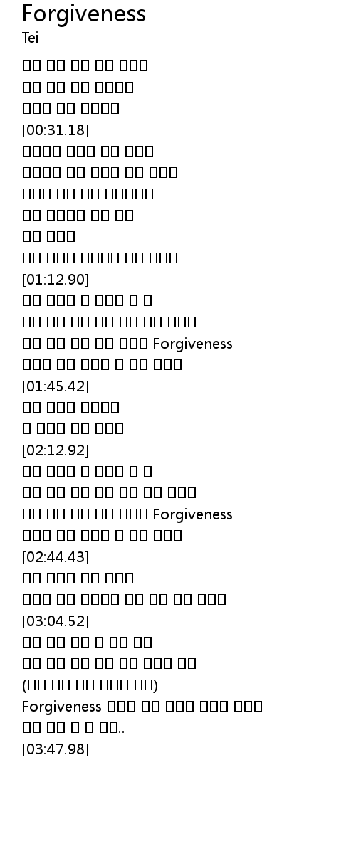 | [03:26.58] | Forgiveness 하늘이 주신 마지막 내한숨 거두어 |