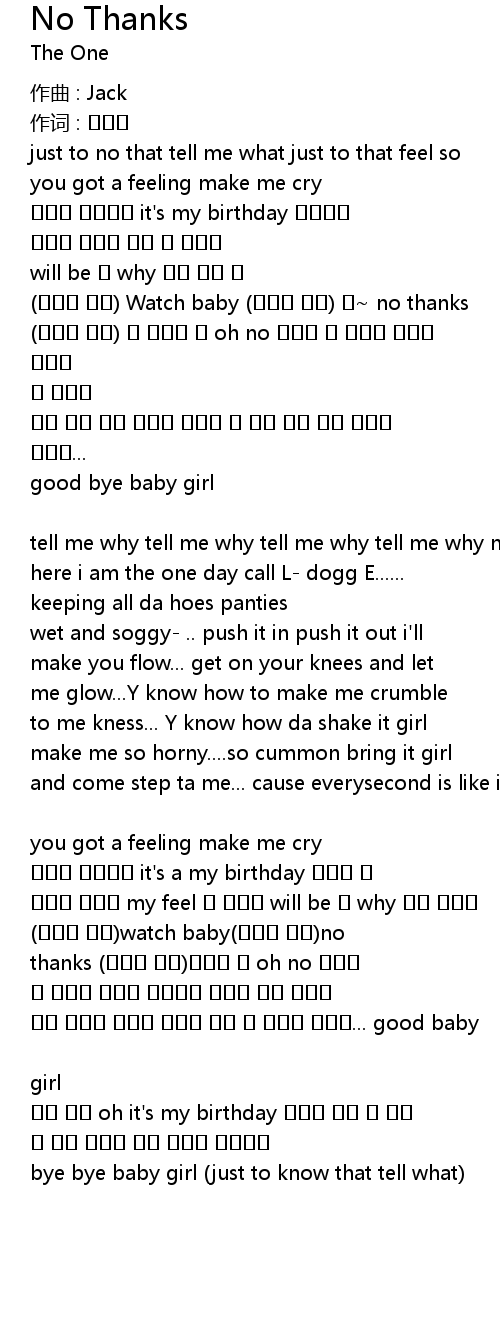 | tell me why tell me why tell me why tell me why no thanks | |