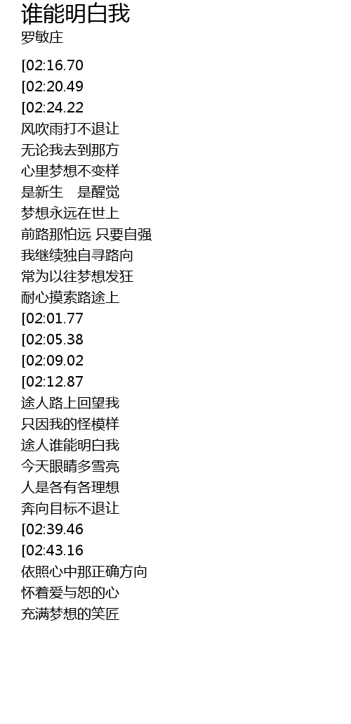 | [01:23.57] | 途人谁能明白我 |
