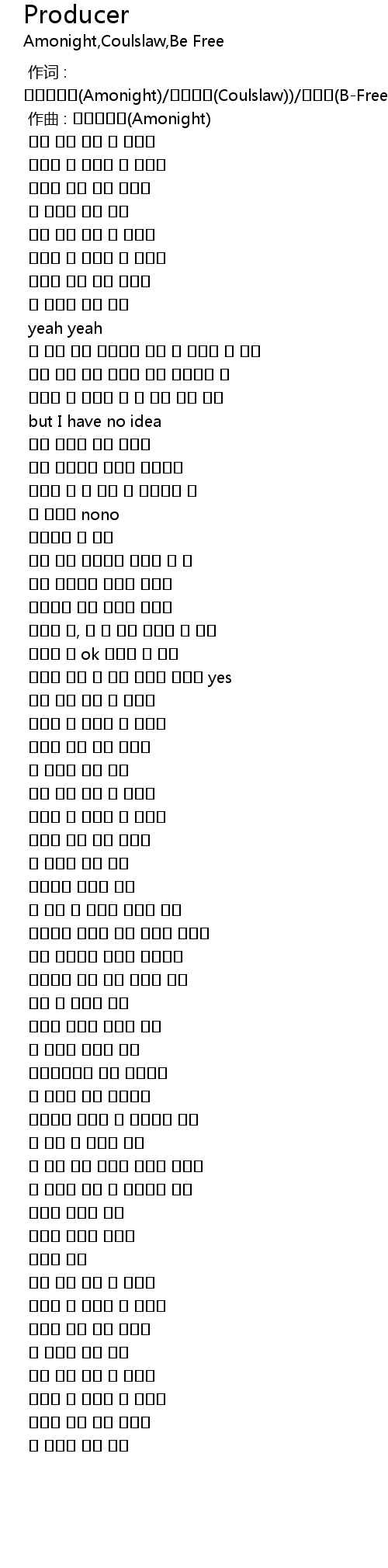 | [00:00.000] | 作词 : 암모나이트(Amonight)/코울슬로(Coulslaw))/비프리(B-Free) |