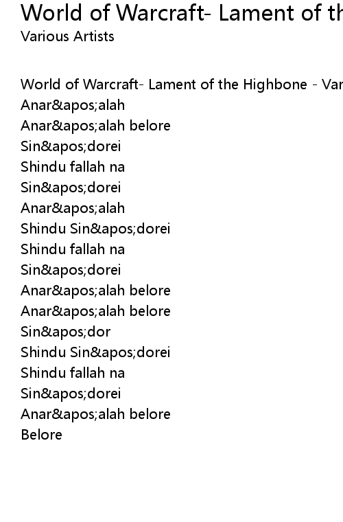 | World of Warcraft- Lament of the Highbone - Various Artists (欧美群星) | |