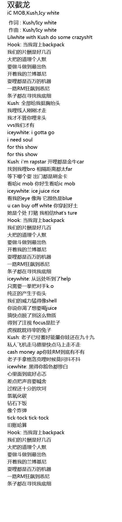 | [00:39.906] | Kush: i'm rapstar 开哩都是金牛car |