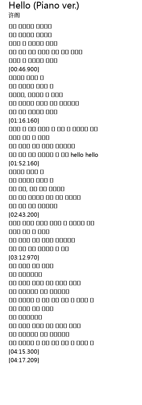 | [01:38.470] | 내가 미칠 듯이 사랑했던 그 사람 hello hello |