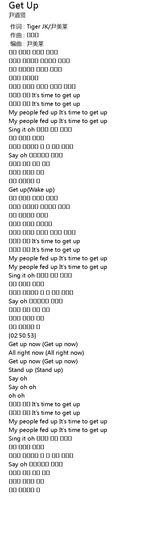 | [00:57.37] | My people fed up It' s time to get up |
