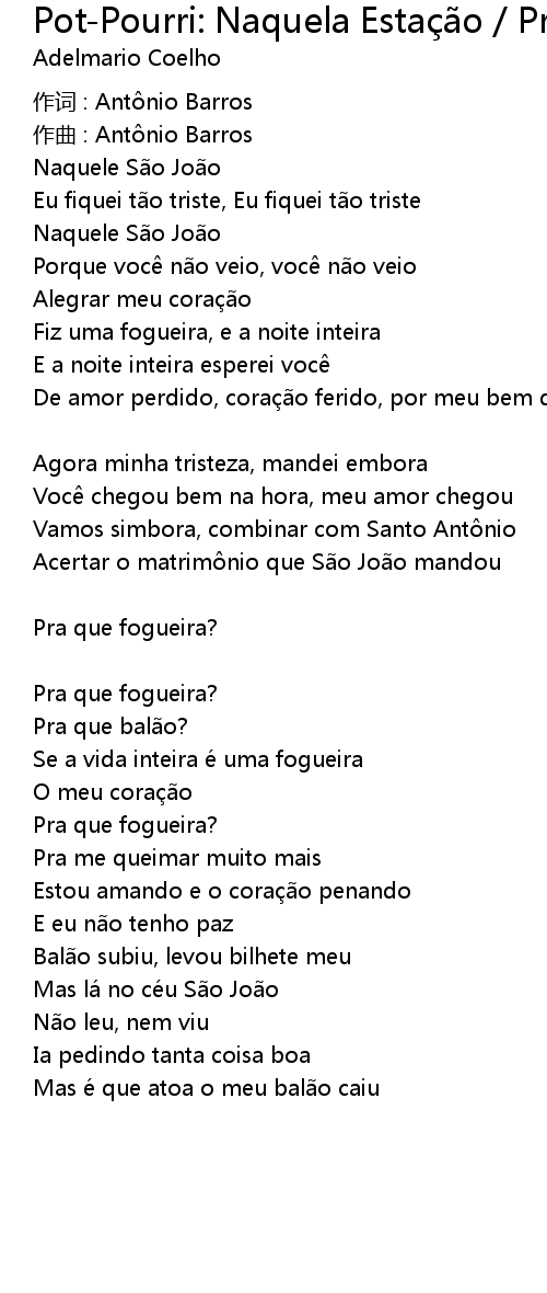 | Song | Pot-Pourri: Naquela Estação / Pra Que Fogueira? |