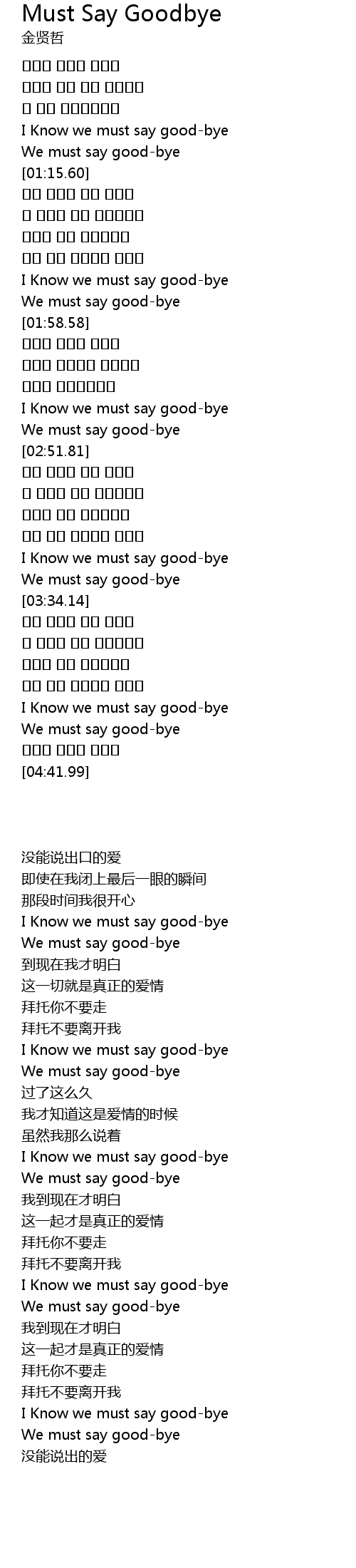 | [02:41.47] | I Know we must say good-bye |